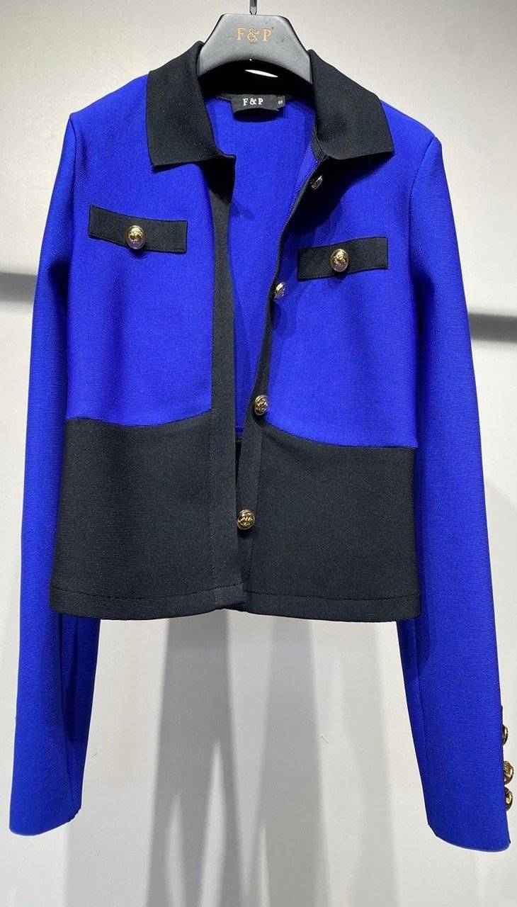 Blazer Dama, Elastica, Eleganta, Albastru/Negru