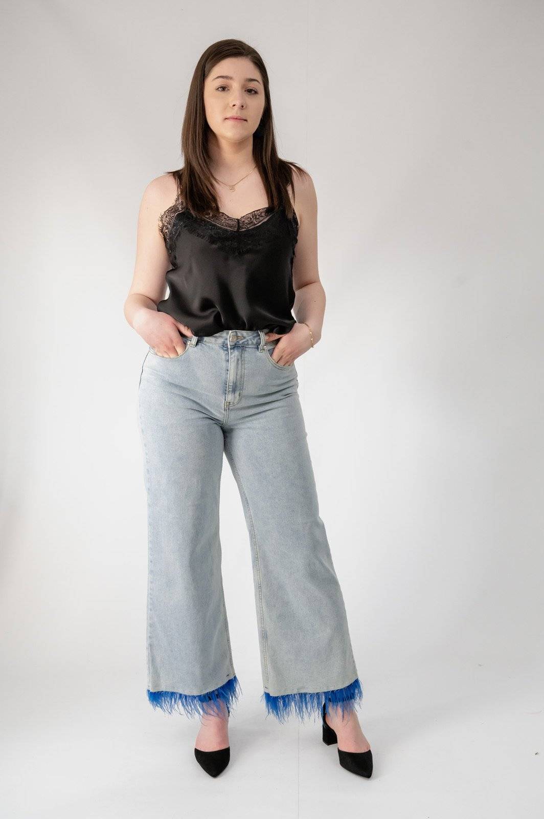 Atunci cand vrei sa fii de neuitat, impresionand placut privitorii, solutia cea mai sigura sunt croielile usor evazate tot mai in tendinte. Pantalonii wide leg cu talie inalta si pene se incadreaza perfect printre premianti.
