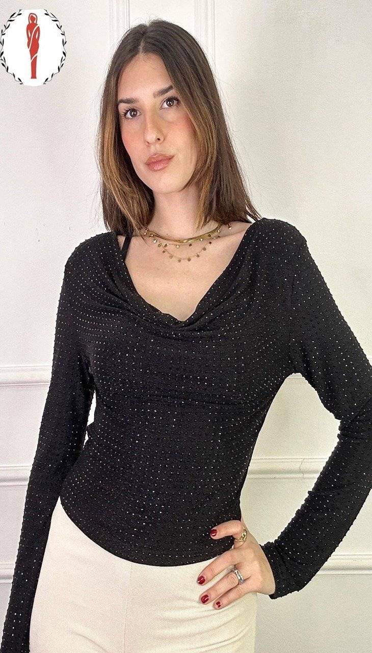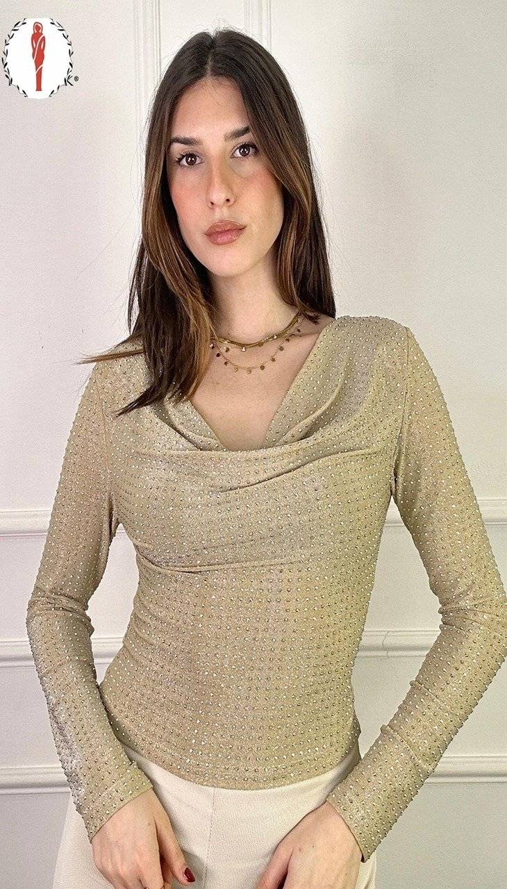 Bluza Dama, Lurex, Strasuri, Decolteu Pliat