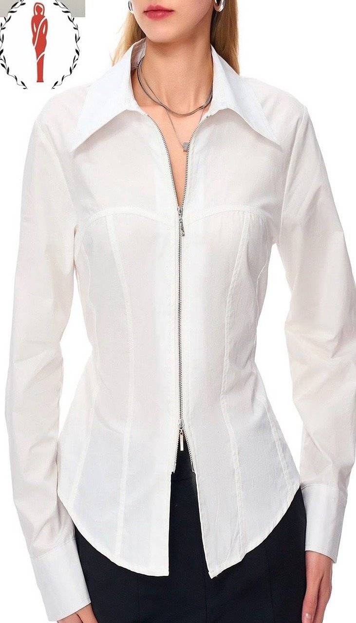 Camasa Dama, Bumbac, Fermoar, Maneca Lunga, Alb