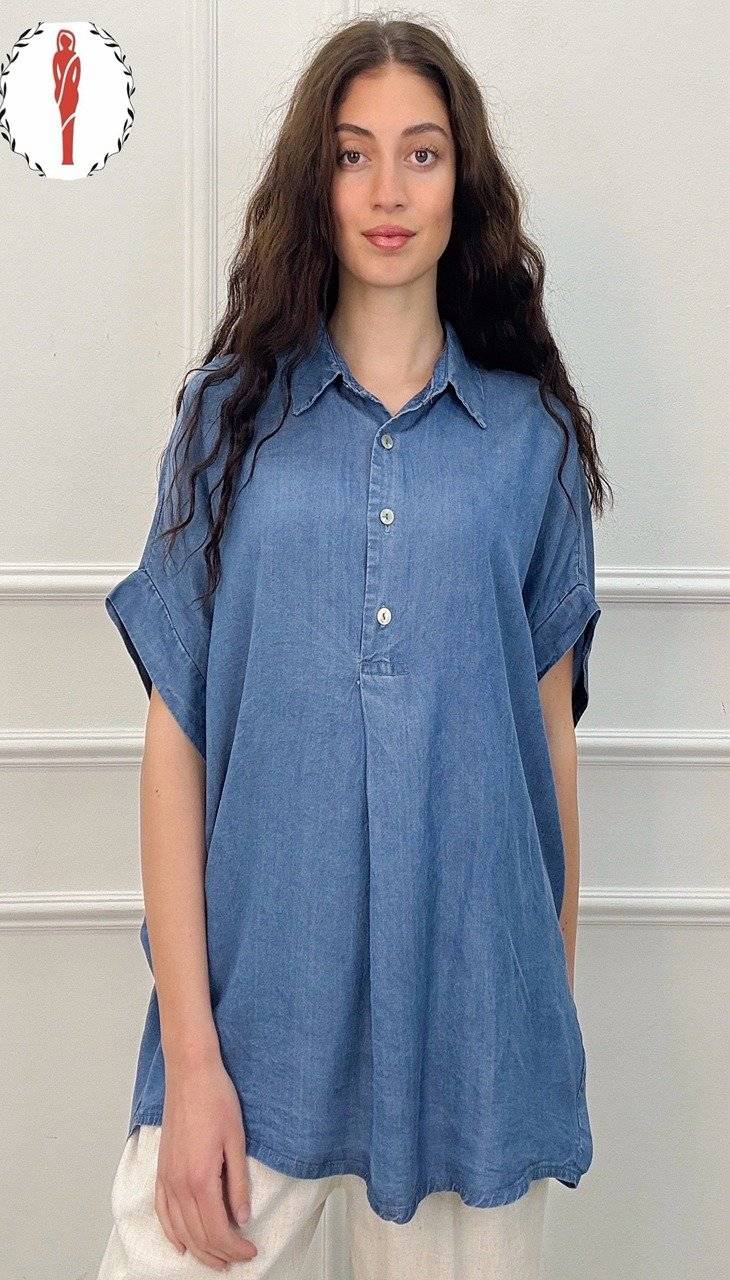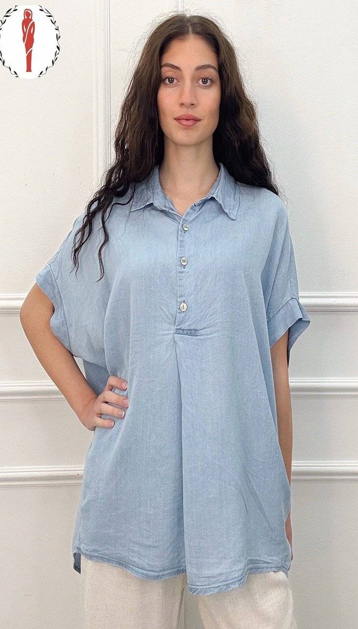 Camasa Dama, Denim Subtire, Premium, Maneca Scurta