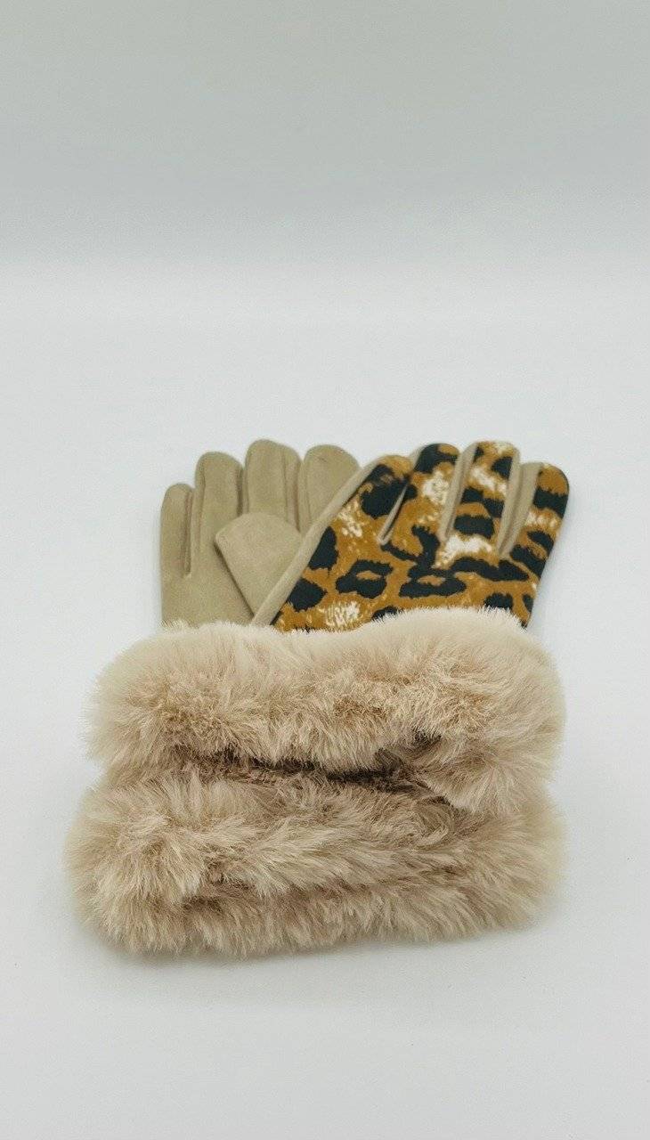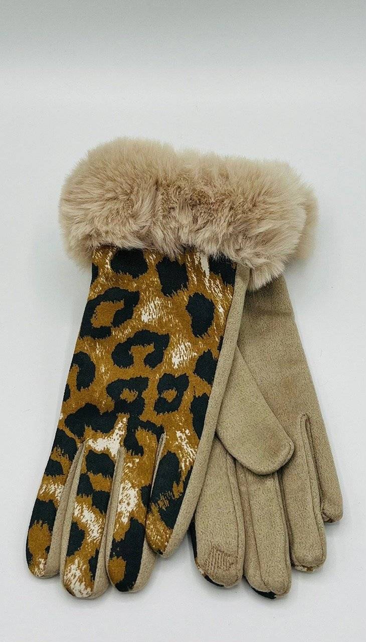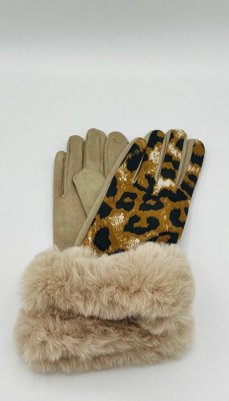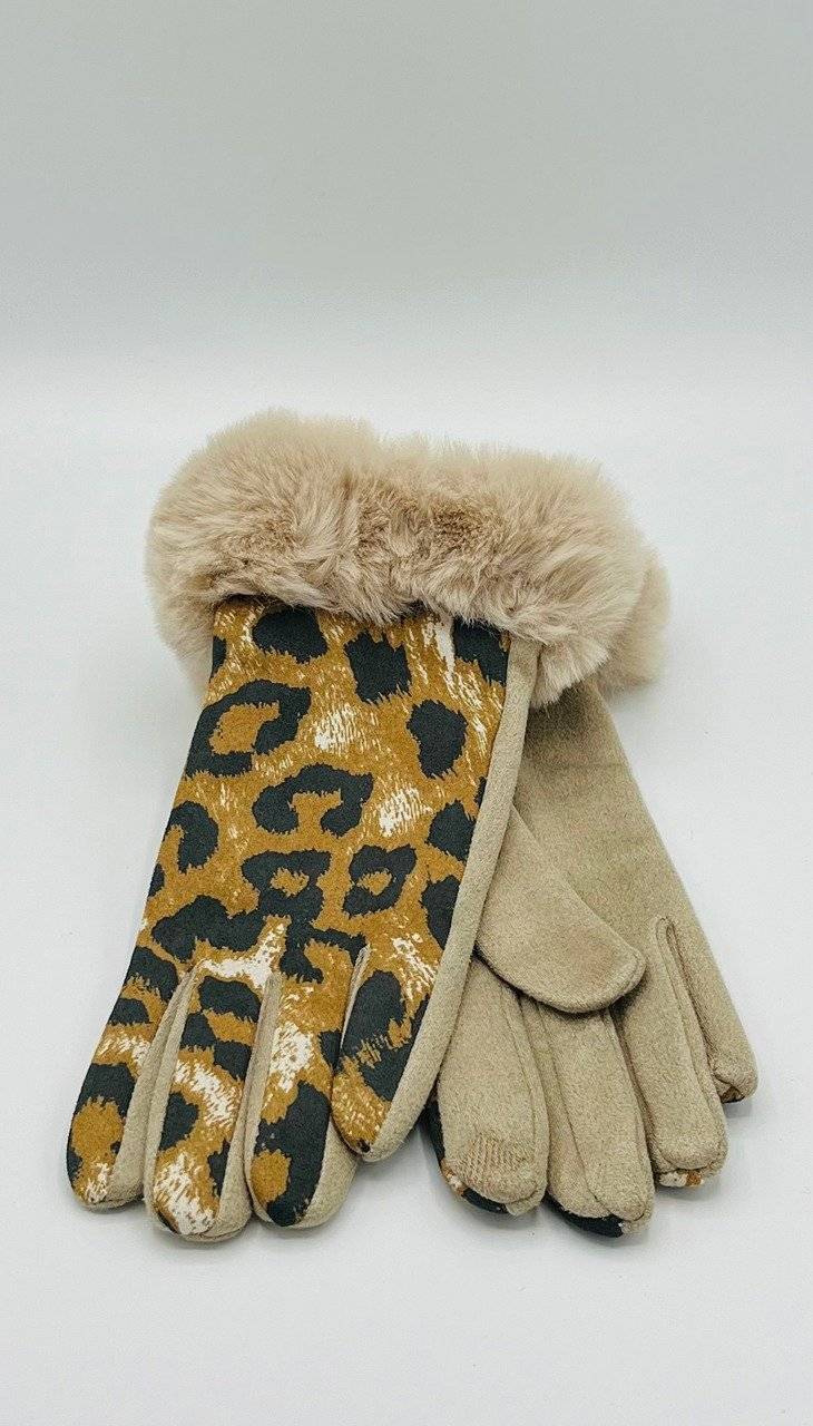 Manusi Dama, Touchscreen, Aspect Piele Intoarsa, Blanita, Animal Print, Bej