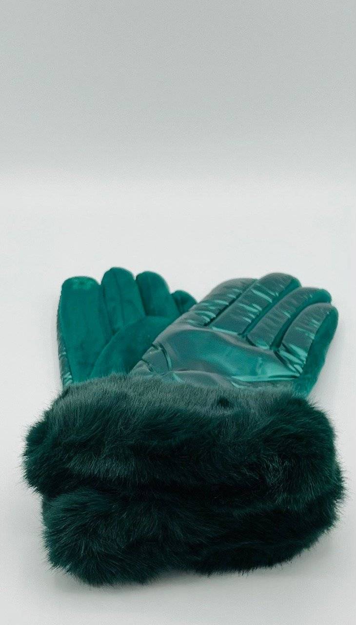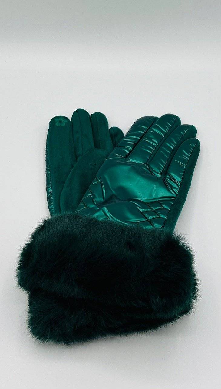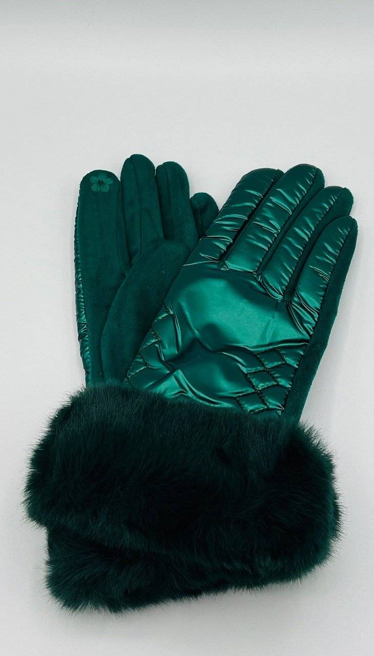 Manusi Dama, Touchscreen, Aspect Piele Intoarsa, Blanita, Verde Metalizat
